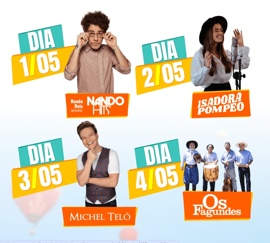 Em 2025, grandes nomes da música brasileira irão se apresentar na arena montada junto ao Parque do Balonismo. Já no feriado de 1°/05, o pop star Nando Reis promete agitar o público. A cantora gospel Isadora Pompeo sobe aos palcos no dia 02/05; No dia 03/05, será a vez do cantor sertanejo Michel Teló; Já em 04/05 o tradicionalismo gaúcho de Os Fagundes será a grande atração, fechando o festival com chave de ouro.