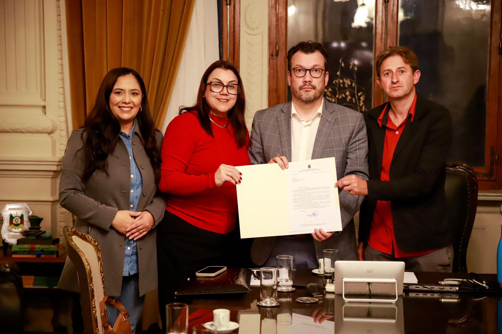 Além da prefeita de Três Cachoeiras e da deputada Eliana Bayer, participaram da reunião assessores da Casa Civil, que acompanharam a entrega do documento e o diálogo sobre a situação da segurança na região.