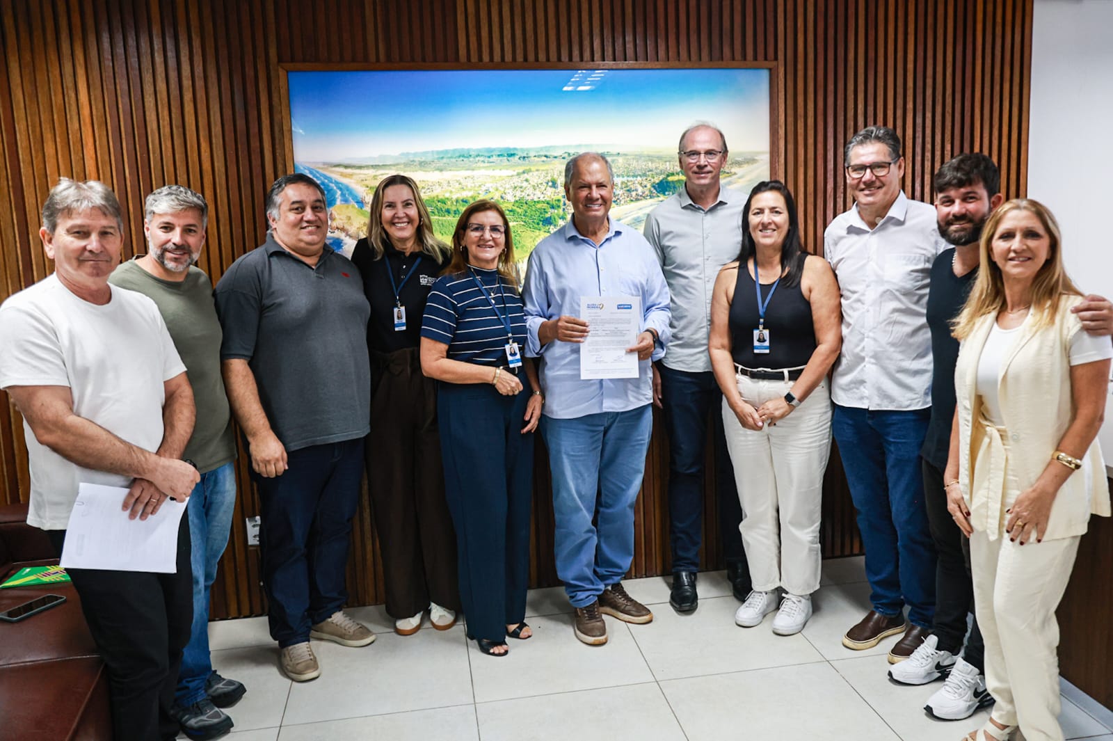 A visita foi recebida na Prefeitura Municipal com a presença da secretária de Educação Rosa Maria Lummertz, do secretário de Turismo e Cultura Gabriel de Mello e do secretário de Meio Ambiente e Urbanismo Douglas de Oliveira Gomes, além de outros representantes da gestão municipal.