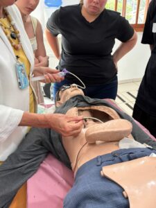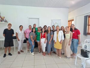 No primeiro dia, as atividades ocorreram em formato de laboratório, no espaço do Serviço de Convivência e Fortalecimento de Vínculos (SCFV), com simulações e orientações técnicas voltadas ao cuidado da pessoa idosa.